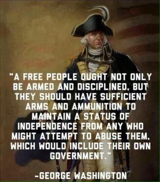 The primary justification I often hear as a road block towards gun regulation aside from “good people need guns” is “We need to be able to protect ourselves from our government.” It’s a reference to the George Washington’s quote above.